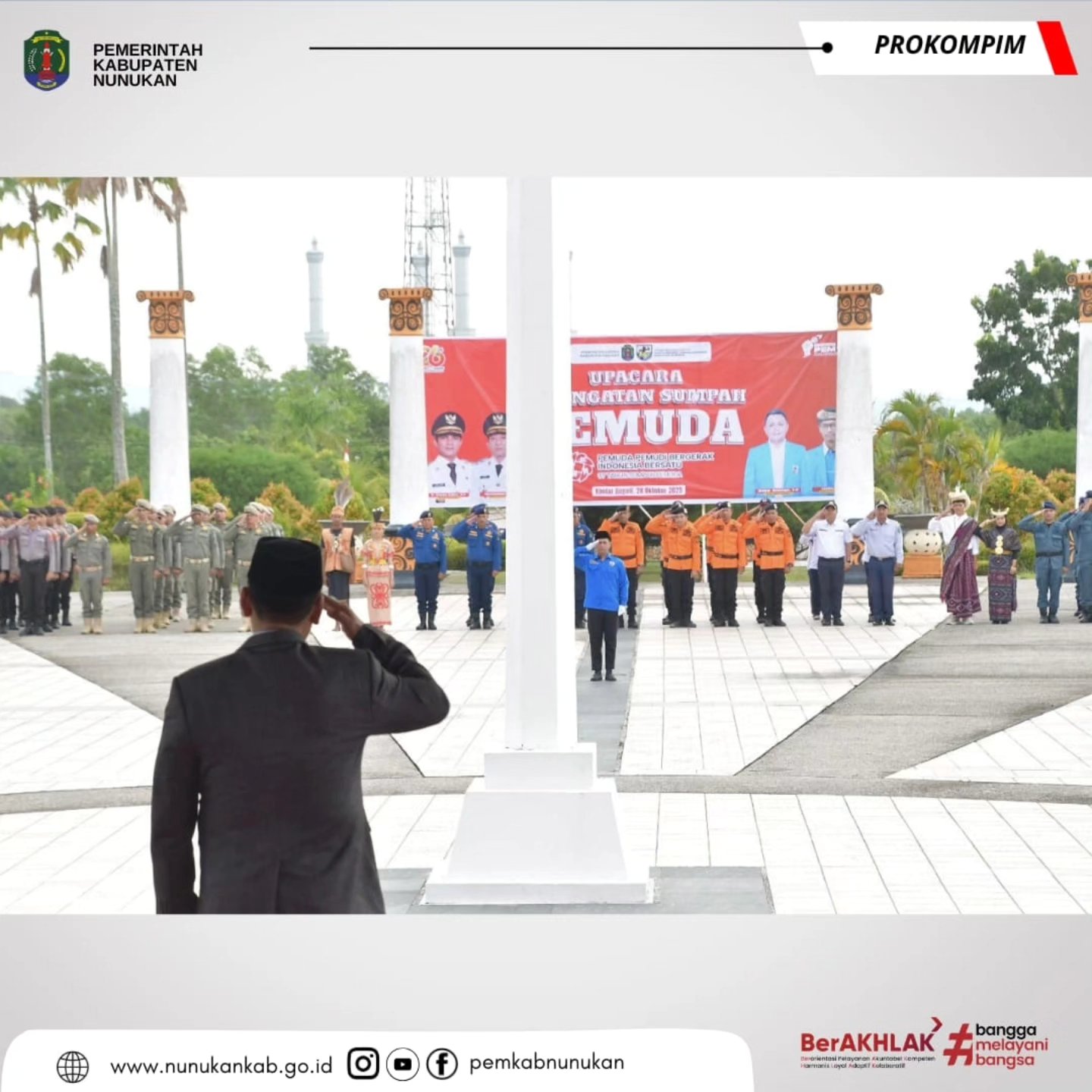 Pemerintah Daerah Kabupaten Nunukan bersama dengan KNPI (Komite Nasional Pemuda Indonesia) rutin mengadakan upacara peringatan Hari Sumpah Pemuda setiap tahunnya. Tema yang di angkat dalam peringatan kali ini adalah, “Pemuda Pemudi Bergerak, Indonesia Bersatu,” mengingatkan bahwa kemajuan bangsa tidak akan tercapai tanpa partisipasi aktif dari generasi muda.